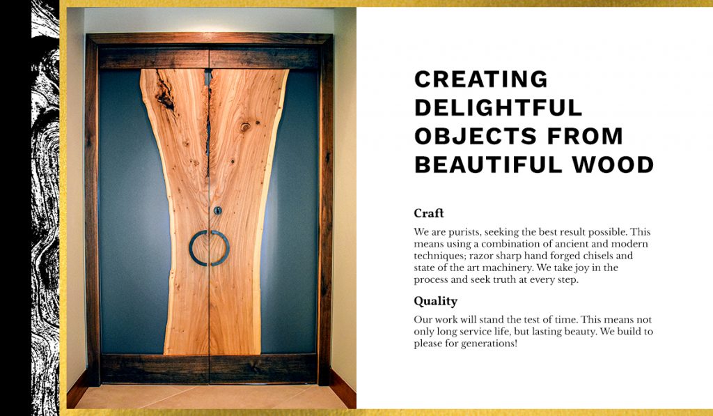 Beyond the logo, we’ve created postcards, advertisements, flyers, business cards, a branding book, and even an “emergency TP ration” during the great toilet paper shortage of 2020 (a wood shaving in a branded medical container). It always helps when the client’s work speaks for itself, and any fan of quality craftsmanship will be in awe with their pieces.